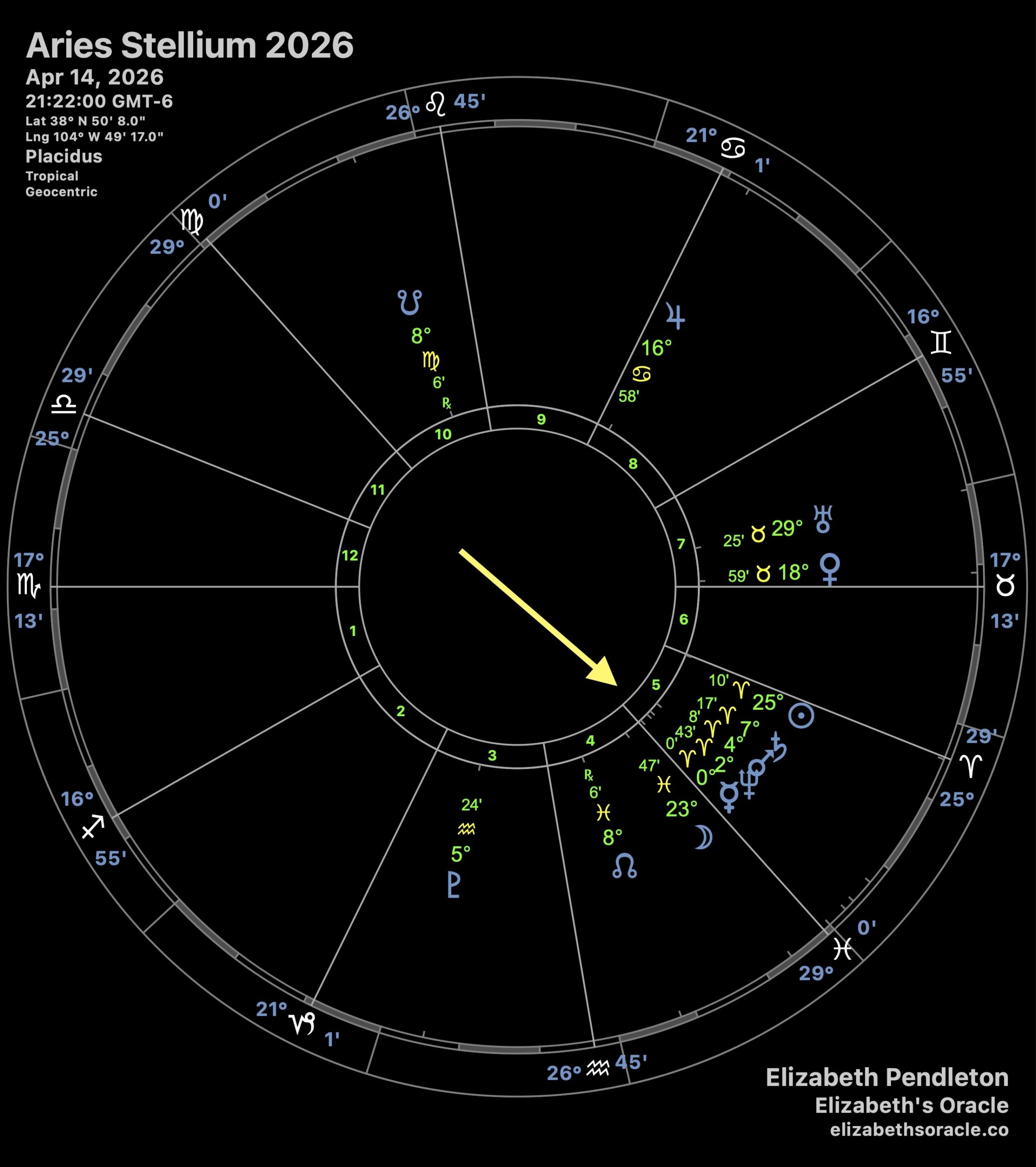 Just after the Sun ventures into the cardinal fires of Aries on March 20th, Mercury’s retrograde will conclude. On April 9th Mars will arrive in Aries, its domicile, as Mercury exits the shadow zone of the retrograde, at 22° Pisces 34′. Matters that emerged during that retrograde, which began late on February 25th, and that have been swimming in the ambiguous waters of Pisces since, are ready for resolution. During the 2026 Aries solar cycle a massive six-planet stellium will form around a powerful new Aries Moon on April 17th, in the buildup to April 19th’s consequential Mars Saturn conjunction. In short, the period of contemplation and completion is yielding to a time of inception and initiation.